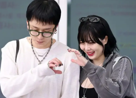 泫雅龙俊亨机场新同框,牵手比心续写爱情篇章